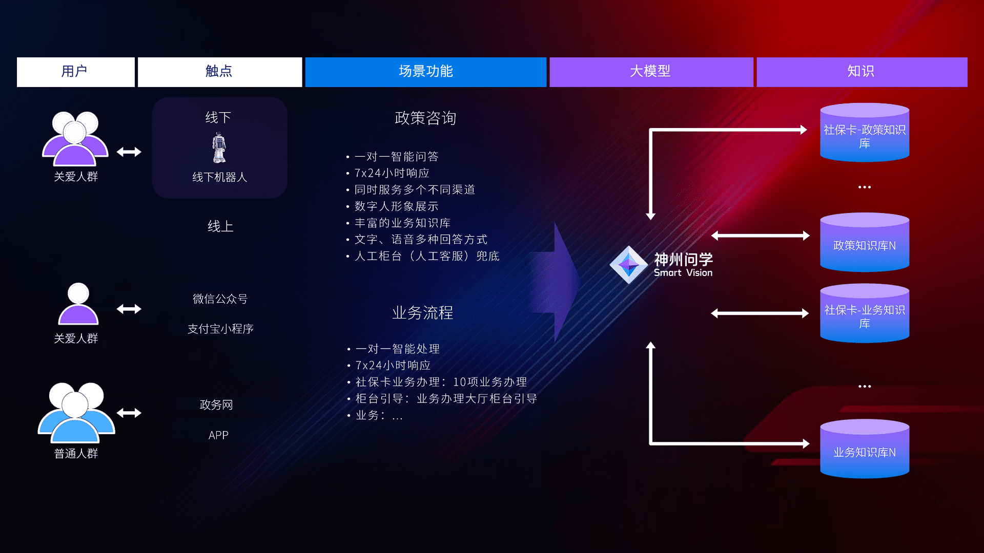 • 线上线下全覆盖:线上提供微信公众号、、支付宝小程序、、政务网、、、app多种渠道,,,与线下机器人形成完整服务体系。。。